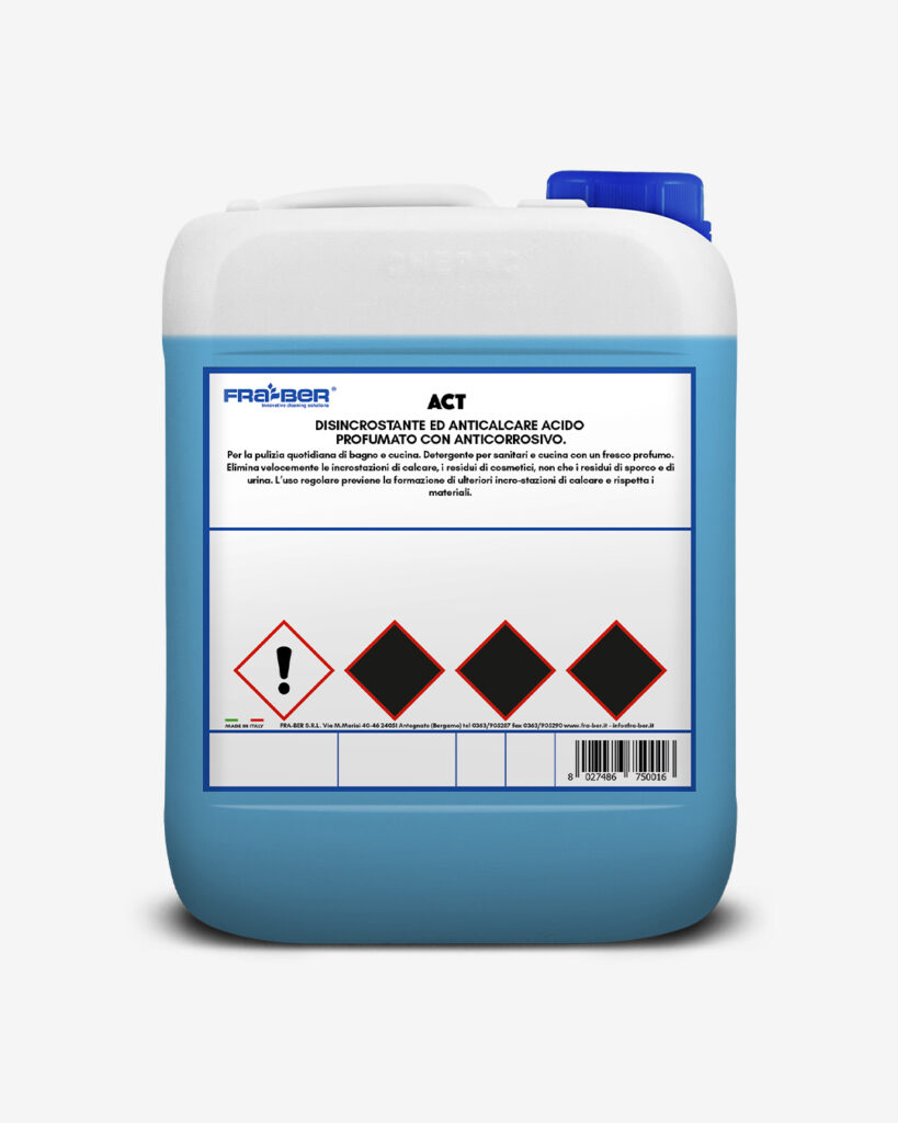 Act es un limpiador activo con aroma fresco para sanitarios y cocinas. También es apto para limpiar azulejos de cerámica y elimina la cal, la orina, el aceite, los residuos de grasa y la acumulación en general.