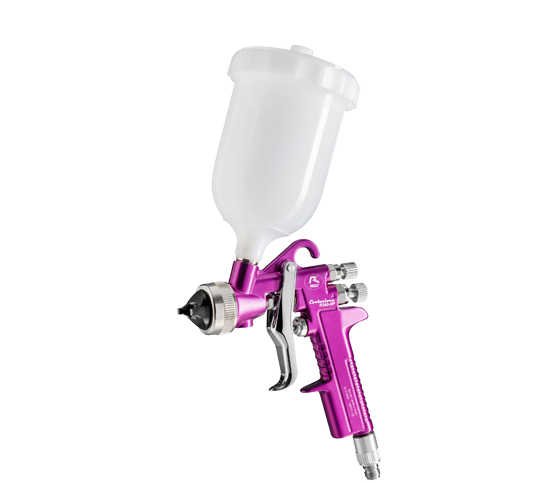 Aerógrafo con ajustes más precisos y utilizable con un mínimo de experiencia en el campo de la carrocería para motocicletas, cascos, el interior de carrocerías o partes no visibles donde no se requiere un acabado satinado, brillante o mate de excelente calidad.