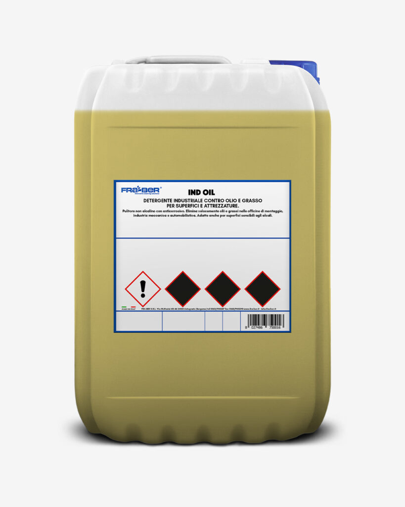 Limpiador industrial de aceites y grasas para superficies y equipos Ind Oil es un limpiador no alcalino con agente anticorrosivo. Elimina rápidamente el aceite y la grasa en talleres, plantas industriales y la industria automotriz. También es apto para superficies sensibles a los álcalis.