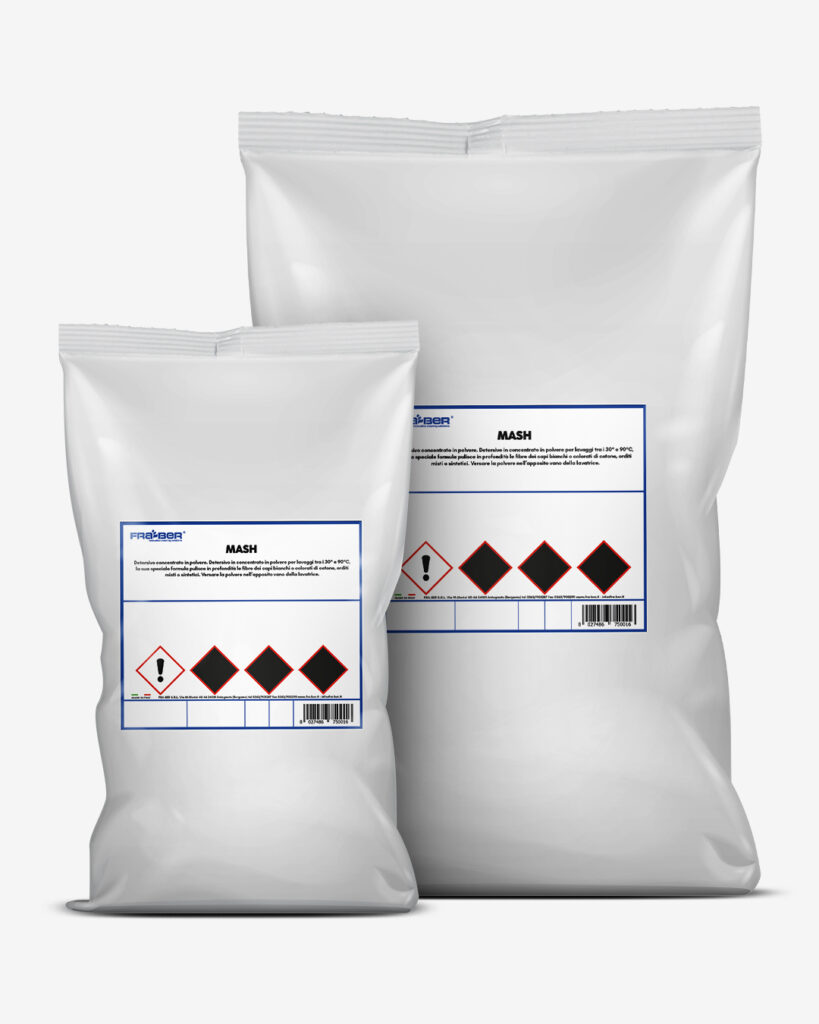Detergente en polvo concentrado El detergente en polvo Mash es un detergente en polvo concentrado apto para lavadora a temperaturas entre 30 °C y 90 °C. Su fórmula especial limpia en profundidad las fibras de algodón blanco y de color, tejidos de urdimbre mixta o sintéticos.